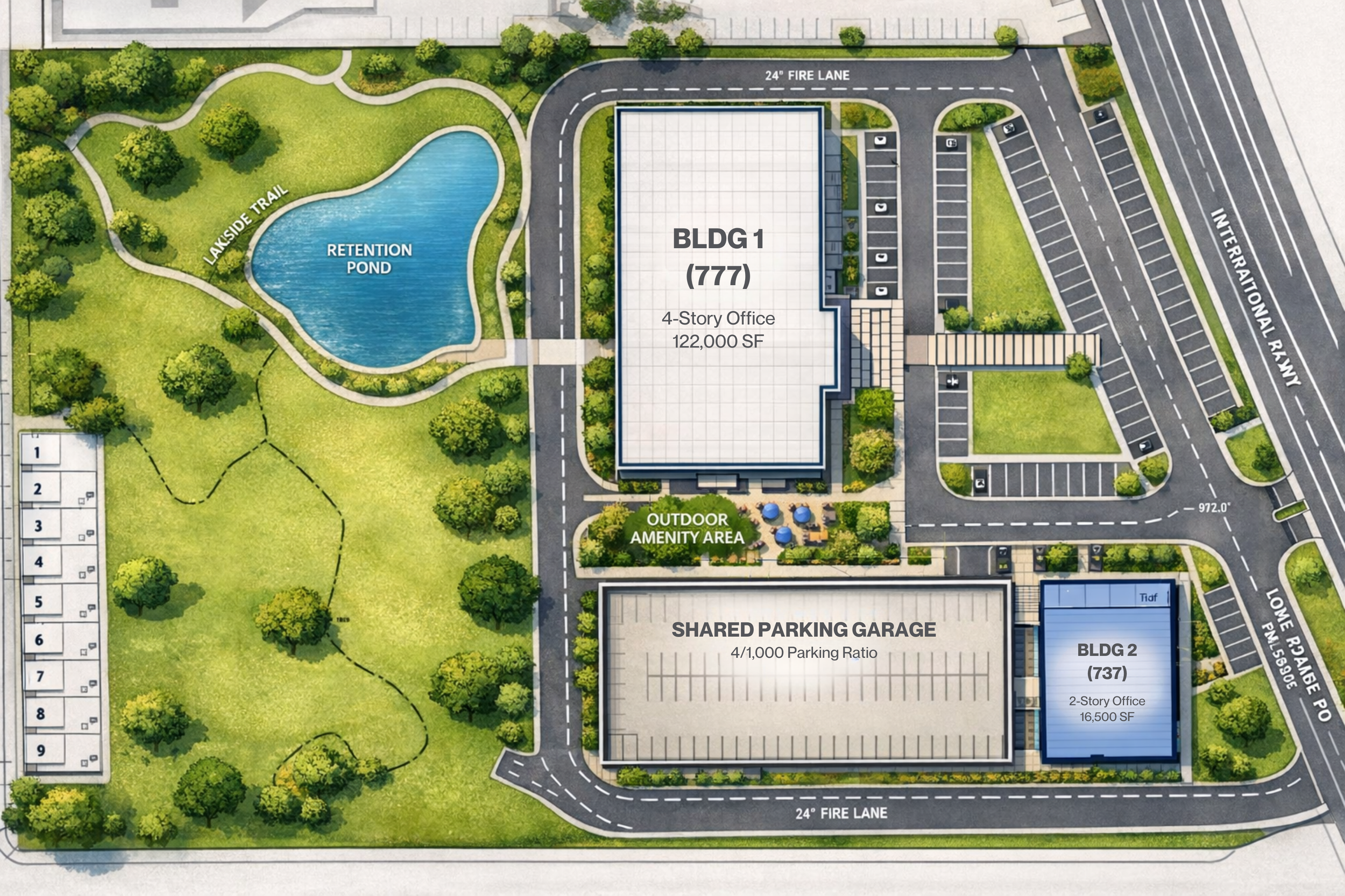 Lakeside International Office Center is a Class-A office campus consisting of a four-story, 120,000 square foot building located at 777 International Parkway and a two-story, 18,500 square foot building located at 737 International Parkway for a total of 138,500 square feet. Both buildings share a four-story parking garage.